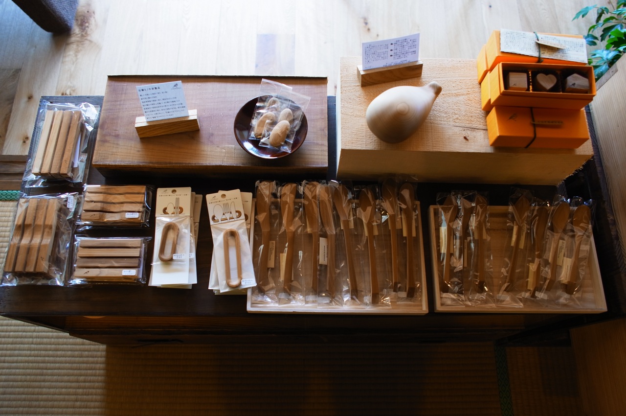 居七十七では、ぼくがつくる木工品だけでなく、関わりのあるお店さんのオリジナル製品や、 店主が選んだ竹細工のカトラリーなどなど、いろいろと取り揃えています。