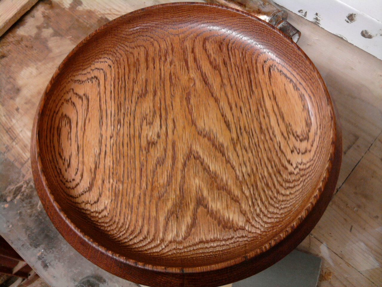 「ものは試し」とオイルで仕上げたあとに、テレピン油で薄めた漆を摺りこんでみたら、なかなか良い感じに染まるではないか。